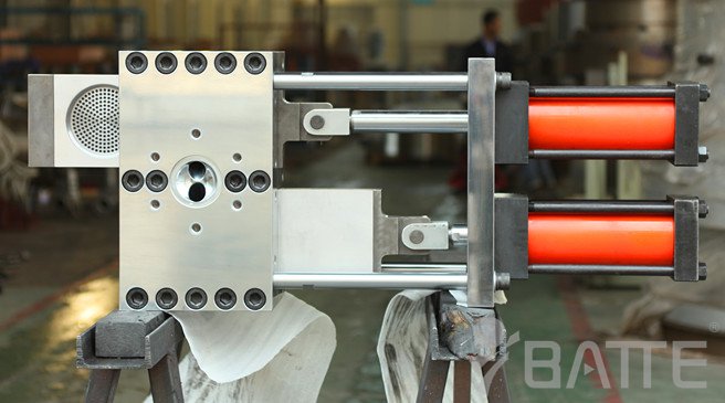 換網(wǎng)無需停機(jī),換網(wǎng)過程出料均勻無漏料,單板、雙板、單柱、雙柱換網(wǎng)器,液壓換網(wǎng)迅速,便于生產(chǎn)及維護(hù)。